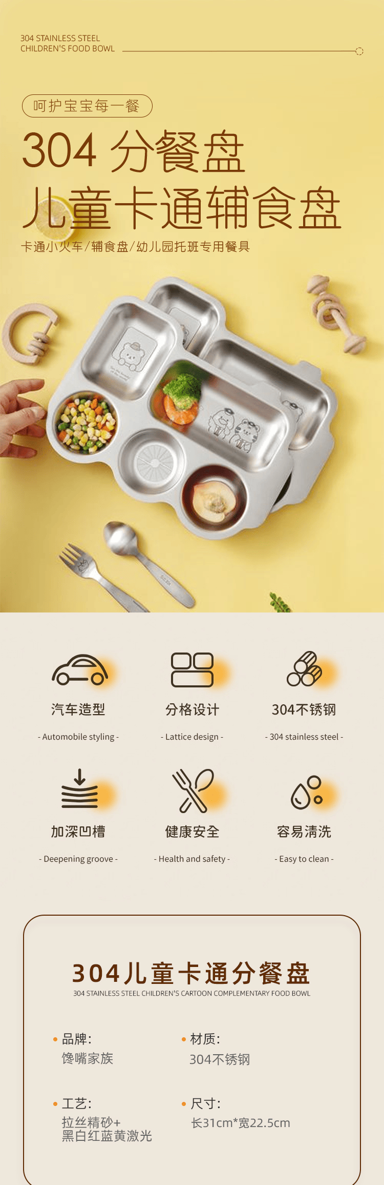 馋嘴家族儿童火车分餐盘S砂光小棕熊长31cm*宽22.5cm,呵护宝宝每一餐-绿色低碳-碳效丰笙数字科技(江西)有限公司