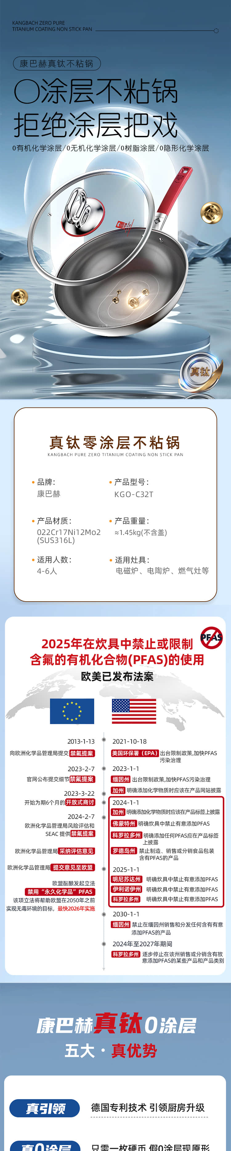康巴赫 康巴赫真钛0涂层不粘炒锅第三代-套装32cm(玻璃盖,201蒸屉,圆柄铲)用创新科技打造厨房新品 真引领 真0涂层 真健康 真抗粘 真耐用-绿色低碳-碳效丰笙数字科技(江西)有限公司
